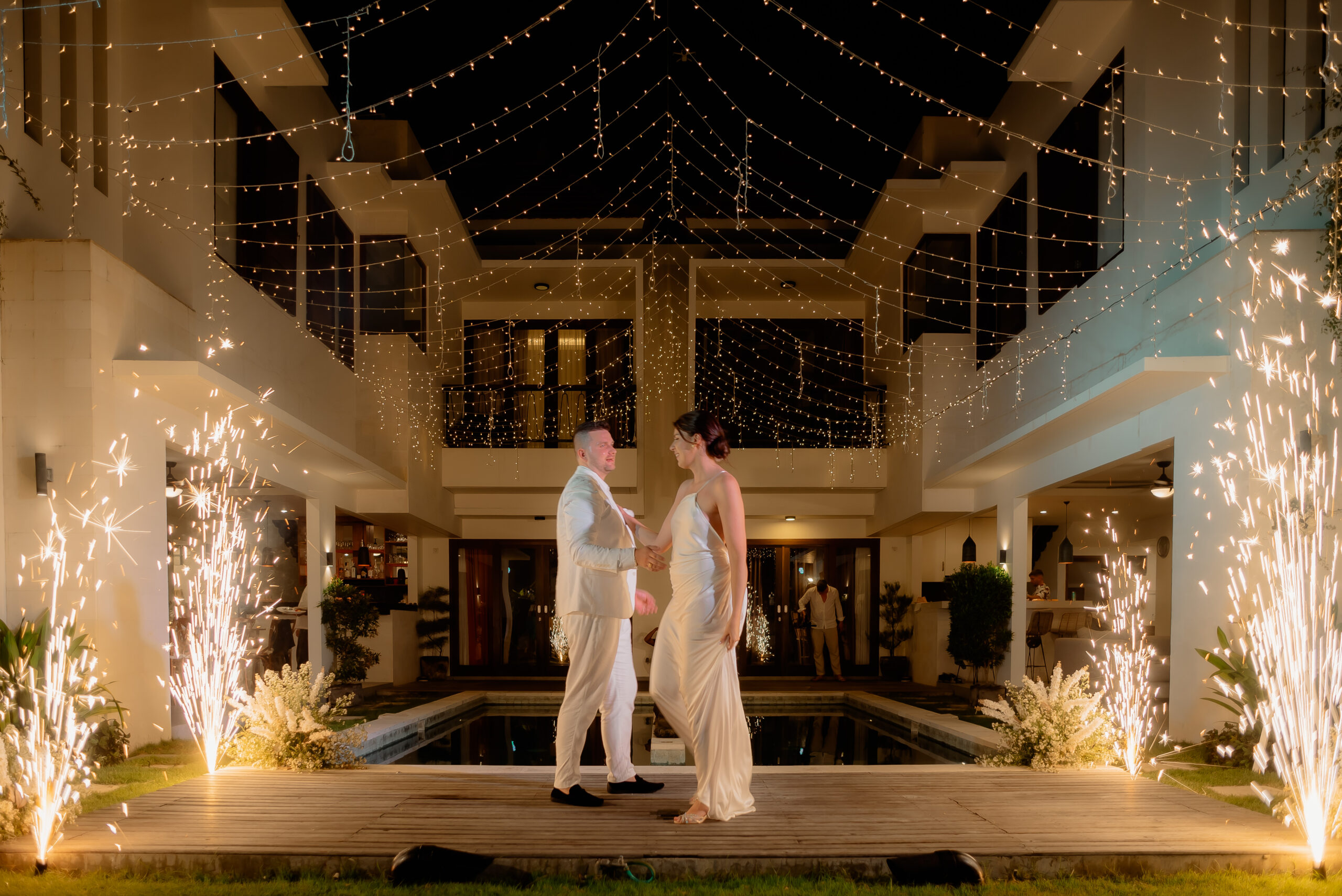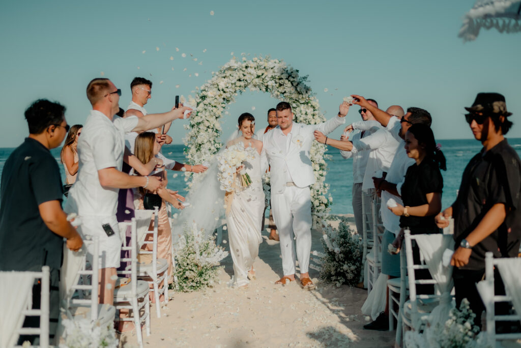 Jakmile snoubenci dorazili na Bali, potkali jsme se osobně na společné schůzce, kde jsme si prošli všechny detaily, předali poslední instrukce hostům a naladili se na nadcházející velký den. Naše agentura byla přítomná už při check-inu všech hostů, abychom zajistili hladký průběh a vytvořili jim pocit, že se o ně staráme od prvního okamžiku.