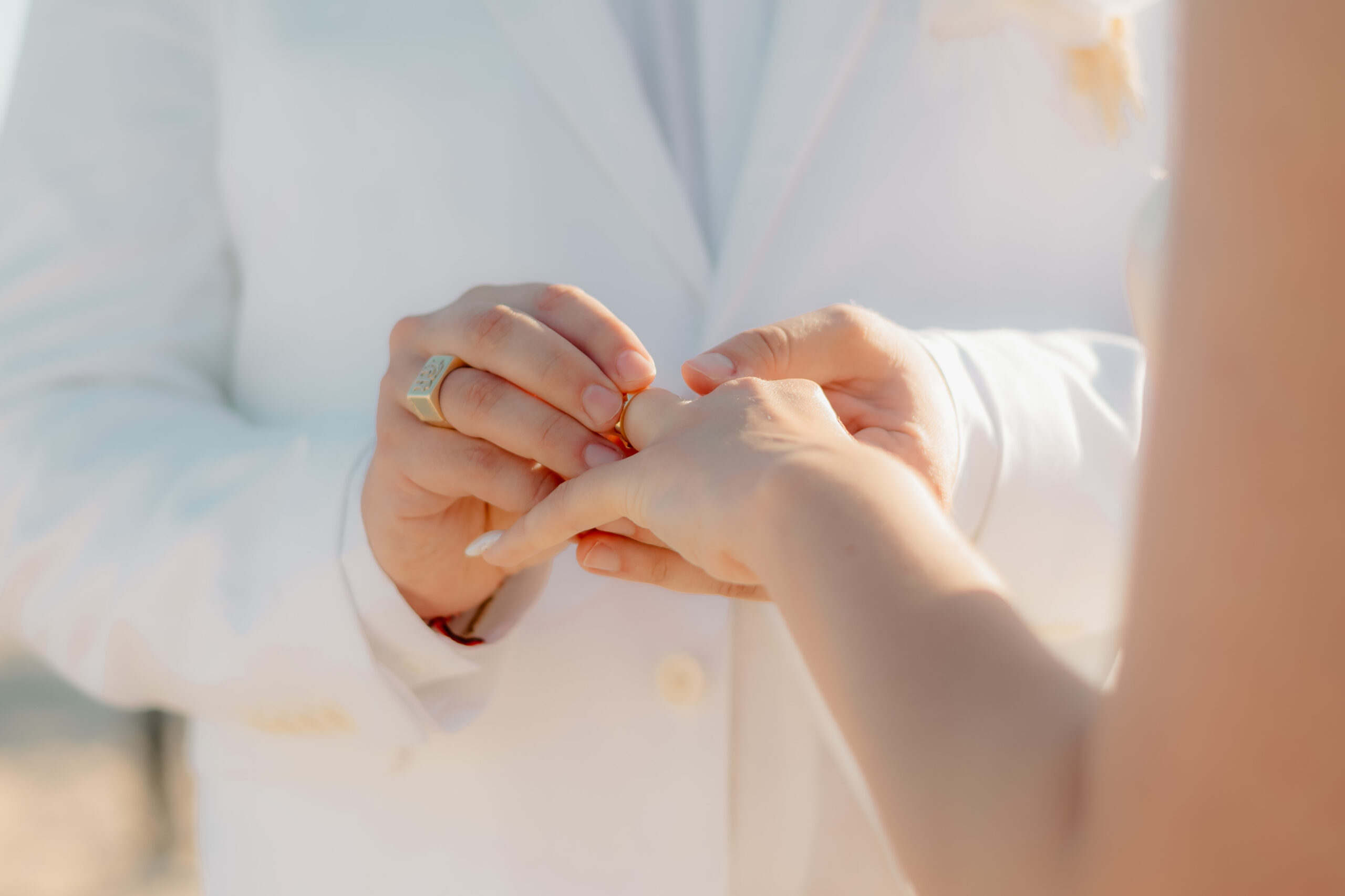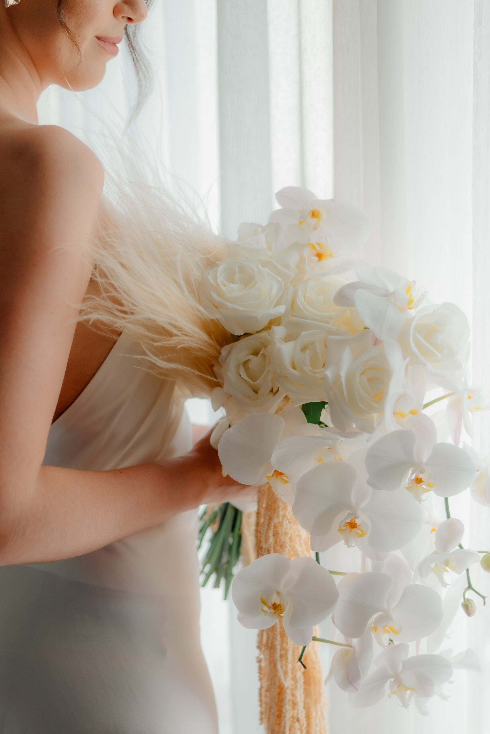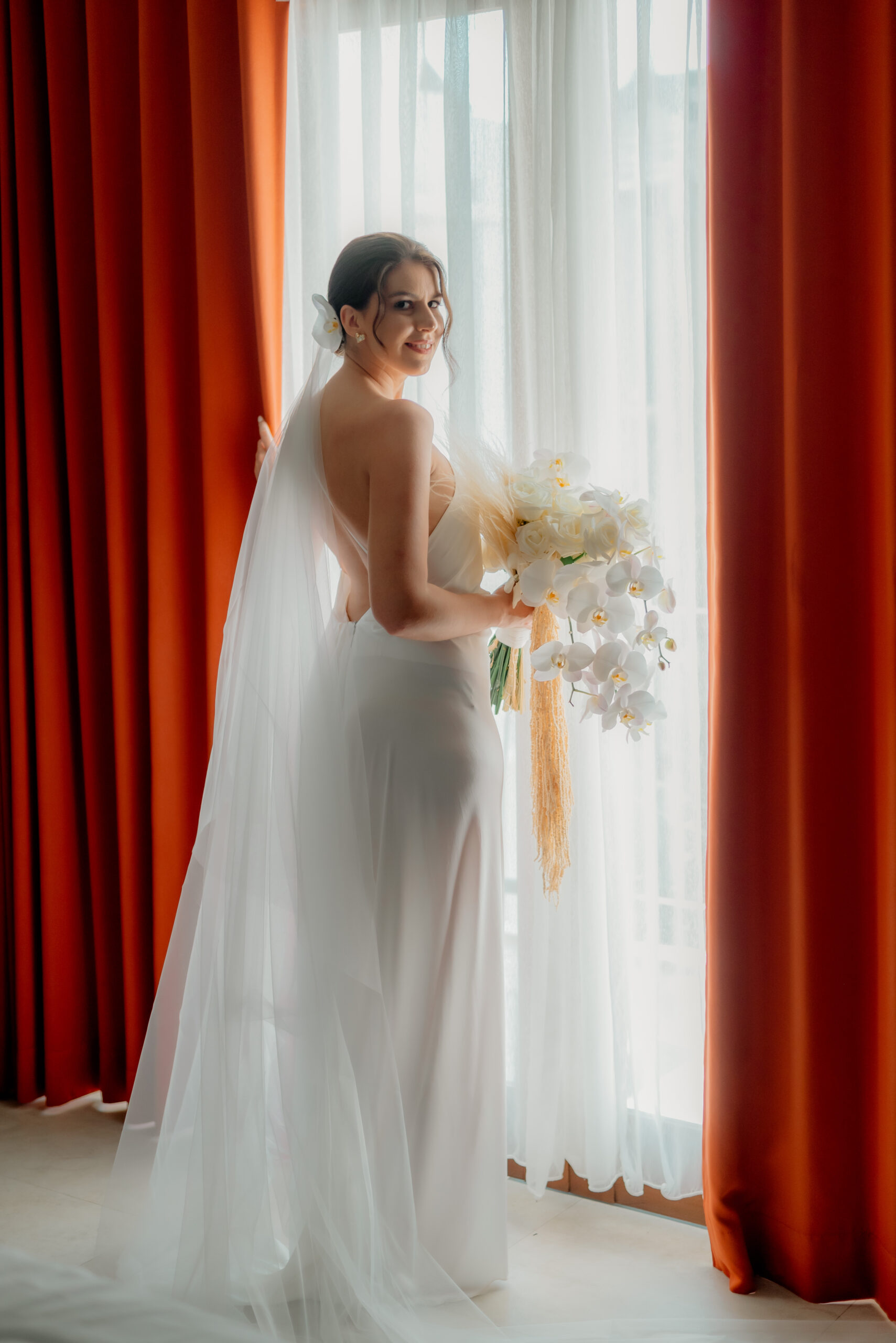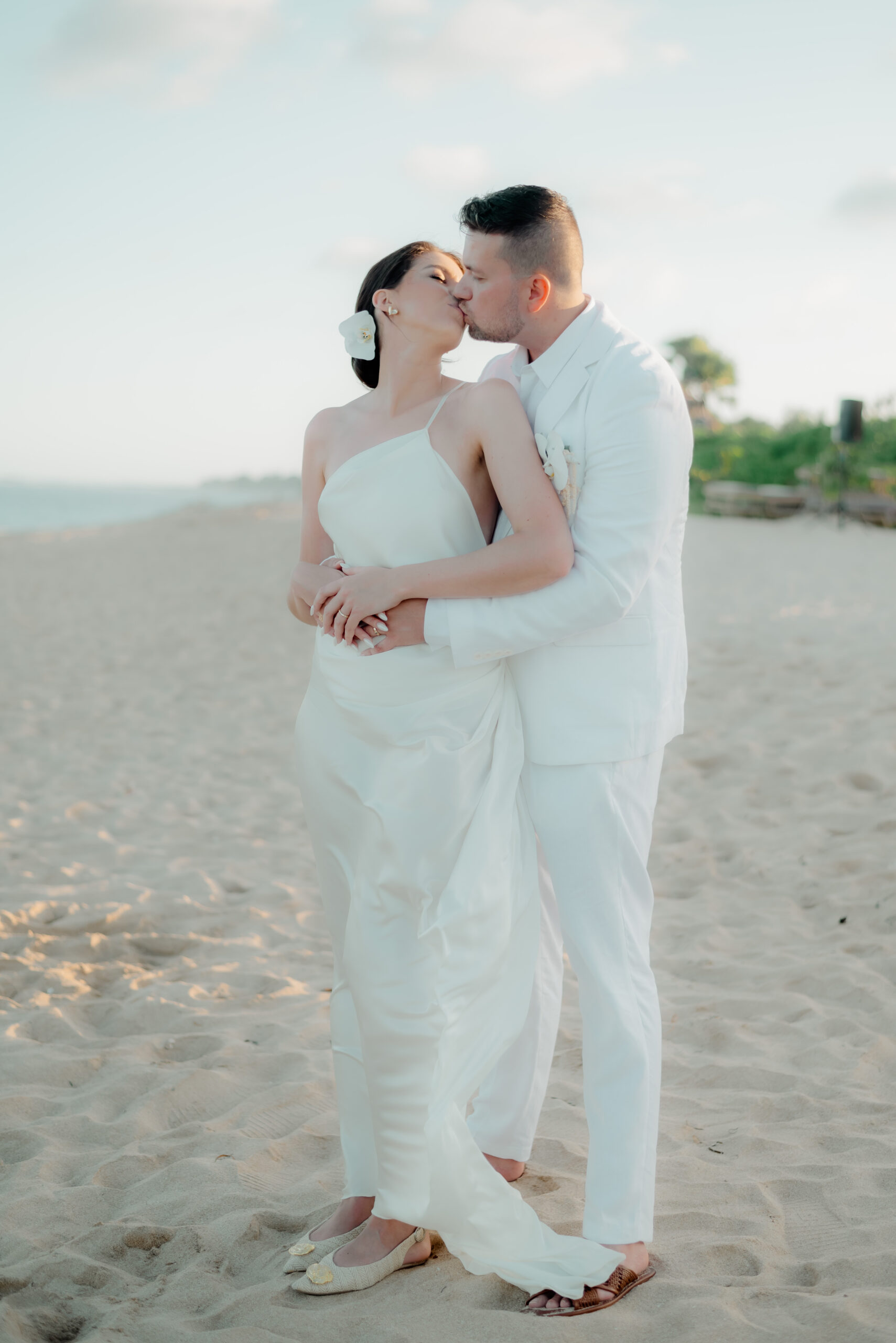 Obřad proběhl na pláži v odpoledních hodinách, kdy světlo bylo měkké a zlaté , tedy ideální pro pohádkový obřad na pláži a následné fotky. Výzdoba byla laděná do bílé s tropickými orchidejemi, které si přála sama nevěsta. Orchideje se odrážely napříč celou svatební výzdobou. Výzdoba a podkresová hudba dotvářela magickou atmosféru svatebního obřadu.