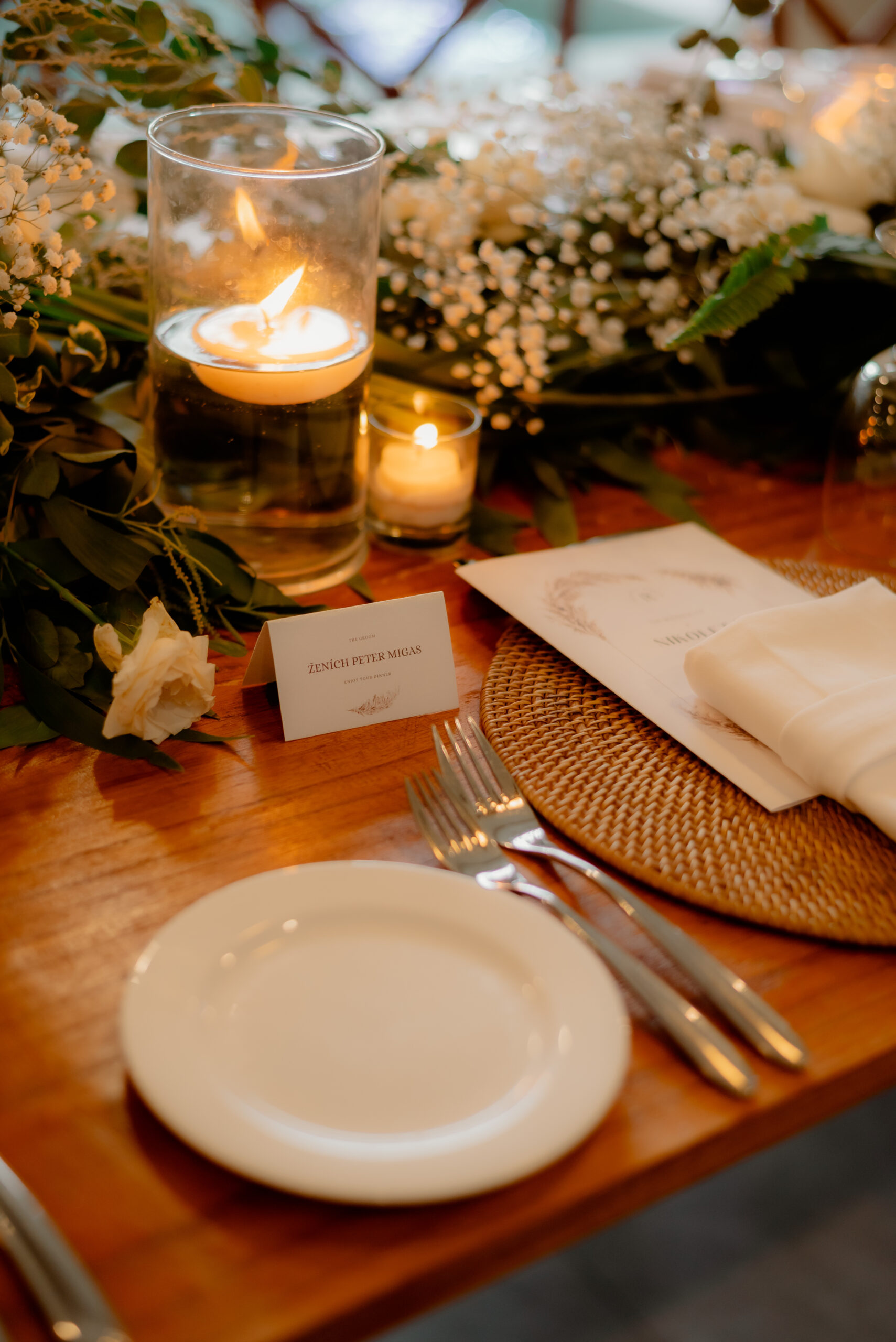 Na plánování jsme měli zhruba šest měsíců. Celý koncept se točil kolem spojení tropického stylu, čisté elegance a balijských prvků. Od začátku jsme věděli, že půjde o svatbu, která bude nejen krásná, ale i plná momentů, které se nezapomínají.