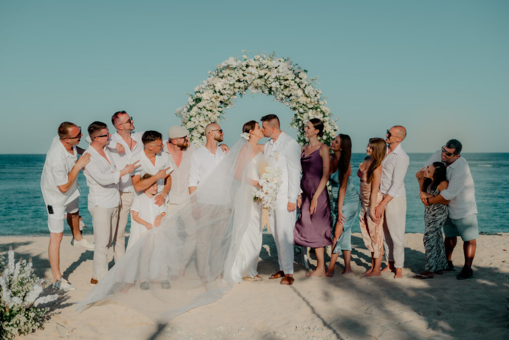 Po obřadu následovalo focení, jak párové, skupinové i ty nenápadné záchytné momenty, které vyprávějí nejvíc. Hosté si zatím vychutnávali drinky a šumění oceánu.
